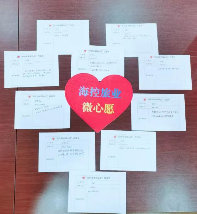 備注:旅業(yè)“微心愿”是海控旅業(yè)“一項公益、兩個陣地、三微動態(tài)”黨建品牌矩陣建設(shè)模塊之一,采取“員工訴說、支部接單”模式,將“微心愿”變?yōu)椤拔椭保ㄟ^點滴小事,傳遞黨組織溫暖。