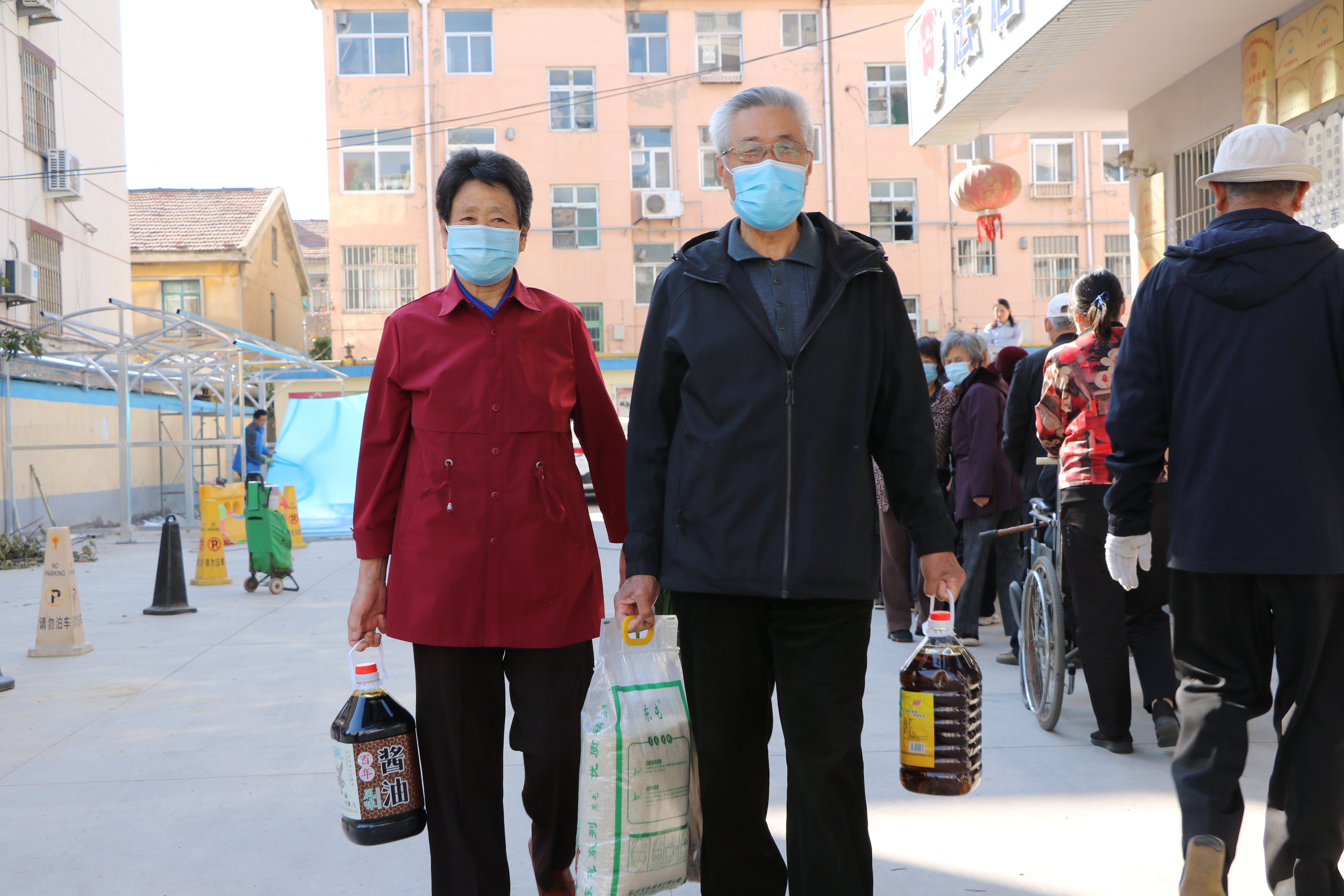 活動當天上午9點,記者在東風路社區居委會門前看到,社區居民正在有序排隊為家里的老人領取大米、面條等重陽節慰問物資。東風路社區黨委書記李艷告訴記者:“東風路社區70歲以上老人共460人,為此我們制定了詳細的領取人員名單和時間安排計劃,保障慰問物資有序發放。”