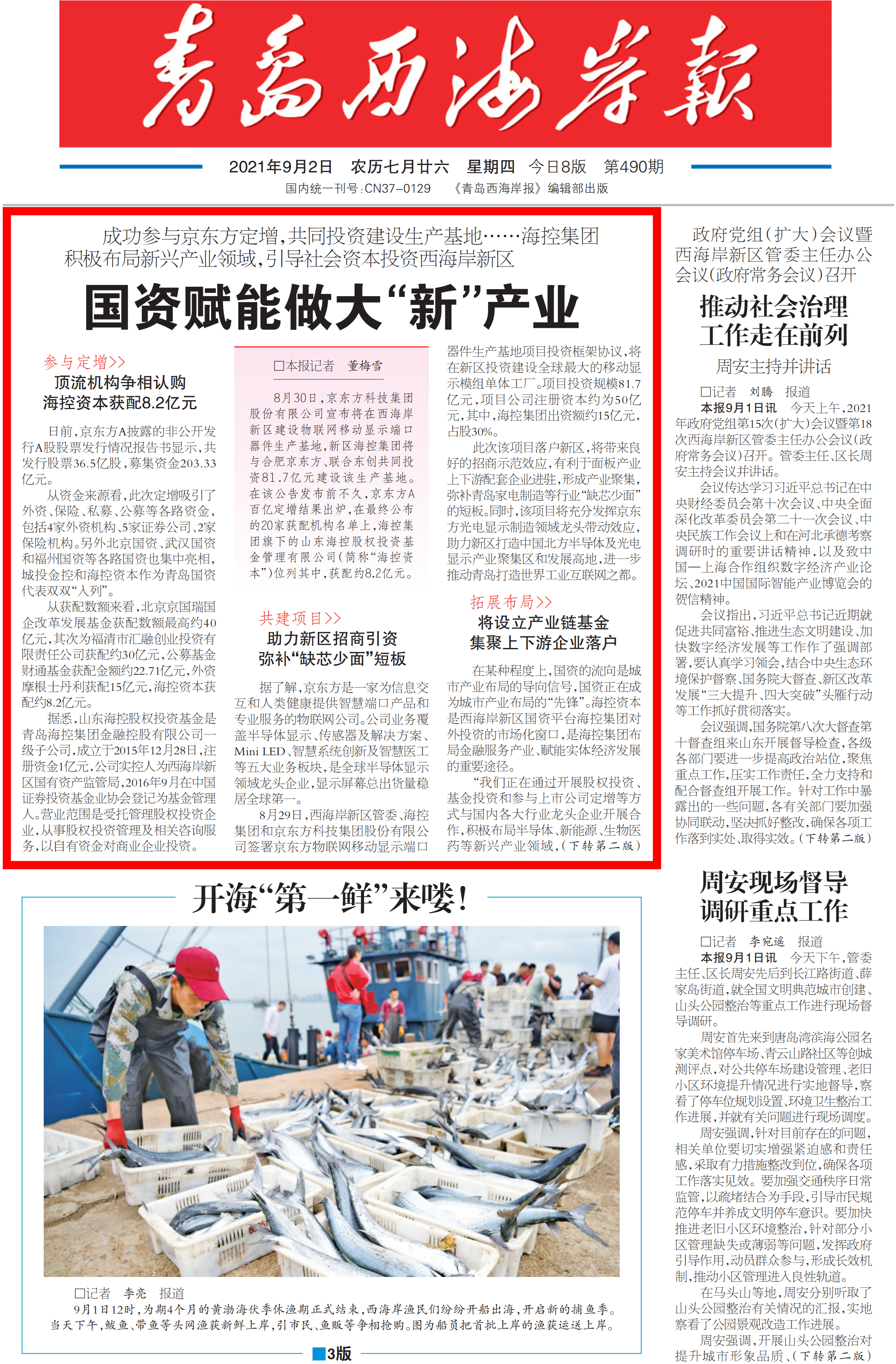 (成功參與京東方定增,共同投資建設生產基地……海控集團積極布局新興產業領域,引導社會資本投資西海岸新區)